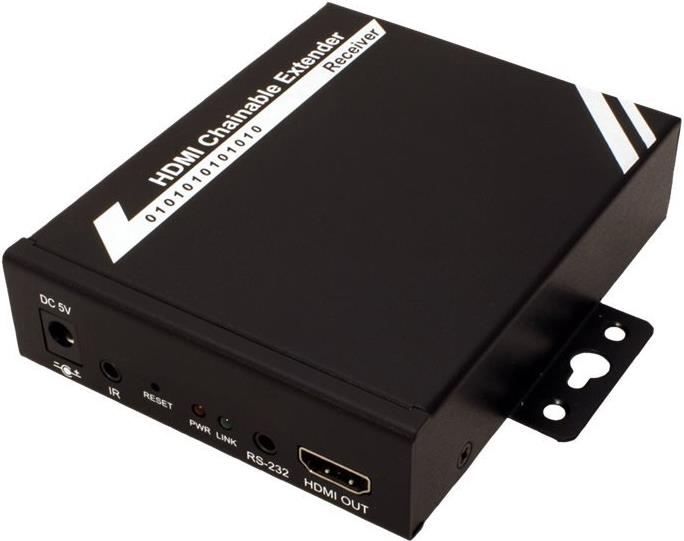 • Lieferumfang: Remote Einheit (3x RJ-45 Buchse, HDMI Buchse), 1x Steckernetzteil (5V; 2A) für Receiver, 1x IR Kabel (1,1m), 1x RS232 Kabel (3,5mm/DB9 BU; 1,1m), Kurzanleitung
