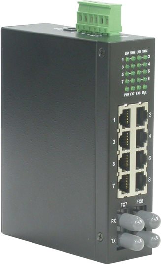 Netzwerk-Switch für den Einsatz in Industrieumgebungen • Fast Ethernet Switch mit 8 Ports - 6x 10/100Base-T und 2x 100Base-FX Multimode • Für den Einsatz im industriellen Umfeld • DIN Hutschienenmontage • Betriebsspannung: +7 bis +30VDC; 6.5W (max.) • Betriebstemperaturbereich: - 20 °C - +70 °C • Eingang DC über Klemmenblock oder DC-Hohlstecker (6,3mm/2,0mm) • Als passendes Netzteil empfehlen wir das Hutschienen-Netzteil NDR-75-24 (21.13.1311).
