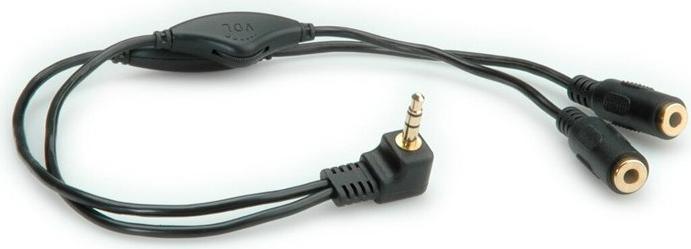 Lautsprecher-Y-Kabel zum Anschluss zweier Lautsprecher oder Kopfhörer an einen Lautsprecher-Ausgang; 1x 3,5mm Stecker (Mini-Klinke), 2x 3,5mm Buchse (Mini-Klinke). 1x 3,5mm-Stecker, 3polig, zum Anschluss an einen Lautsprecher-Ausgang, z.B. am PC oder iPod 2x 3,5mm-Buchse, 3polig, zum Anschluss von Lautsprechern oder Kopfhörern Integrierte Lautstärkeregler, getrennt für jede Ausgangsleitung Farbe: schwarz Kabellänge: 30 cm Adapter mit 1x Stecker TRRS (4pol) auf Buchse 1xTRS(3pol, Stereo Headphone) und Buchse 1xTS (2pol Mic).
