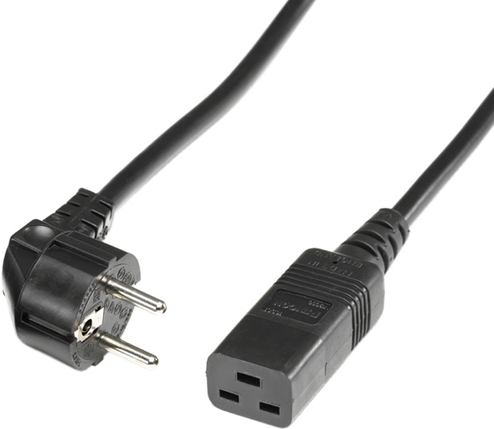 Dieses Anschluss Kabel 16 A mit IEC320 C19 Buchse und Schuko Stecker, oft verwendet bei USV ab 3000 VA und ist zum Anschluss von Blade-Servern.