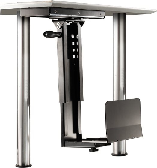 Platzsparender PC Halter, schafft mehr Platz auf Ihrem Arbeitstisch Stabile Stahlkonstruktion Befestigung unter der Tischplatte, Schrauben nicht im Lieferumfang enthalten Höhe und Breite ...