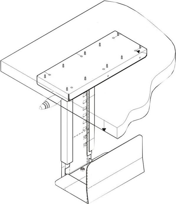 | Befestigung | Untertischplatte, 150 mm ausziehbar |