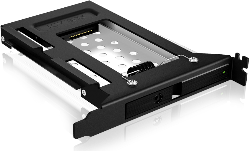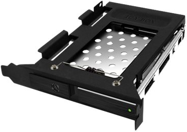 Dann könnte dieser Wechselrahmen eventuell die passende Lösung sein. Er bietet Platz für eine 2,5" (6,35 cm) HDD oder SSD und wird hinten am Rechner in einen Platz für Erweiterungskarten eingebaut. Dementsprechend flach fällt das Layout aus, die Festplatten dürfen eine Maximalhöhe von 9,5 mm aufweisen.