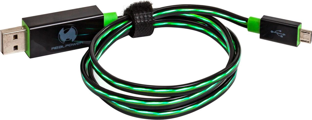 RealPower LED floating - USB-Kabel - 5-polig Micro-USB Typ B (M) bis USB (M) - 74.5 cm (USB/USB 2.0) - geformt - grün (187656)