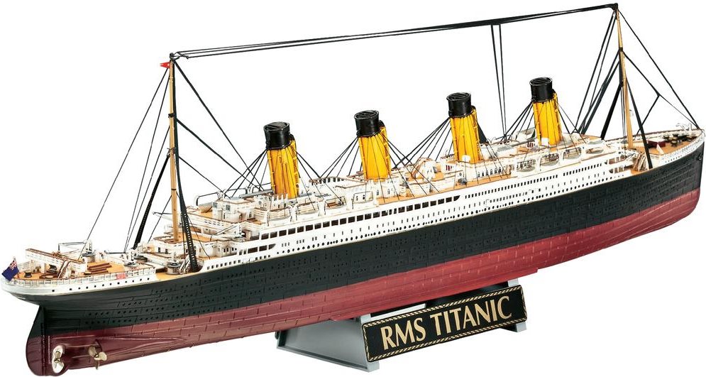 Dieses Geschenkset erscheint in einer informativen Sonderverpackung anlässlich 100 Jahre Titanic . Neben dem Plastikmodellbausatz im Maßstab 1:400, beinhaltet dieses exklusive Set 6 Basisfarben, einen Pinsel sowie Kleber. Als besondere Beilage liegen Originalnachdrucke historischer Dokumente bei. Dies sind: 3 Postkarten, eine Speisekarte der ersten Klasse, eine 28-seitige Werbebroschüre der White Star Line. Die Kiellegung der Titanic erfolgte am 31.März 1909, etwa fünfzehn Wochen später, nach dem man das Schwesterschiff Olympic auf Kiel gelegt hatte. Beide Dampfer wurden fortan gleichzeitig gebaut und mit einem Höchstmaß an Eleganz und Luxus ausgestattet. Es war vorgesehen, beide Dampfer im angesehenen transatlantischen Liniendienst der White Star Line einzusetzen. Zwei Jahre später, am 31.Mai 1911, übergab die nordirische Werft Harland & Wolff die fertig gestellte Olympic an die Reederei und noch am selben Tag gegen 12:15 Uhr erlebte die Titanic ihren Stapellauf. Mit einer Länge von 269,04 m, einer Breite von 28,19 m und einer Tonnage von 46.329 BRT übertraf sie alle bis dahin gebauten Schiffe und war im Jahr 1912 das größte Schiff der Welt. Zunächst übernahm Kapitän Edward John Smith das Kommando der Olympic, ehe er für die Jungfernfahrt auf die Titanic wechselte. Am Mittwoch, dem 10.April 1912, brach sie von Southampton auf, wobei sie nur knapp einem Zusammenstoß mit der im Hafen vertäuten New York entgeht. Die Stationen Cherbourg (Frankreich) und Queenstown (Irland) lagen auf dem Weg nach New York (USA). Die Überfahrt verlief problemlos, bis das aufgrund zahlreicher Eisbergwarnungen am Sonntag (14.April 1912) gegen 23:40 Uhr (Bordzeit) die Glocke des Ausgucks ertönt. Das Schiff streift den Eisberg auf der Steuerbordseite und versinkt nach zwei Stunden und vierzig Minuten in den eisigen Fluten des Atlantiks. Nur 712 Menschen überlebten die Katastrophe. Kapitän Smith ging mit seinem Schiff unter. - Detaillierter Rumpf mit strukturierter Beplankung - Drei Schiffsschrauben - Separates Ruder - Detaillierte Decks mit Holzplanken-Struktur - Detaillierte Decksaufbauten - Rettungsboote und Davits - Separate Reeling - Lastkräne - Detaillierte Schornsteine - Treppenaufgänge - Detaillierte Masten - Displayständer - Detaillierte Abziehbilder mit Dekorstreifen