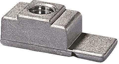 Einsatz an Schränken und Schienen mit Rechteck- Systemlochung 12,5 x 10,5 mm mit abbrechbarer Einführungshilfe, aus Zink- Druckguss.