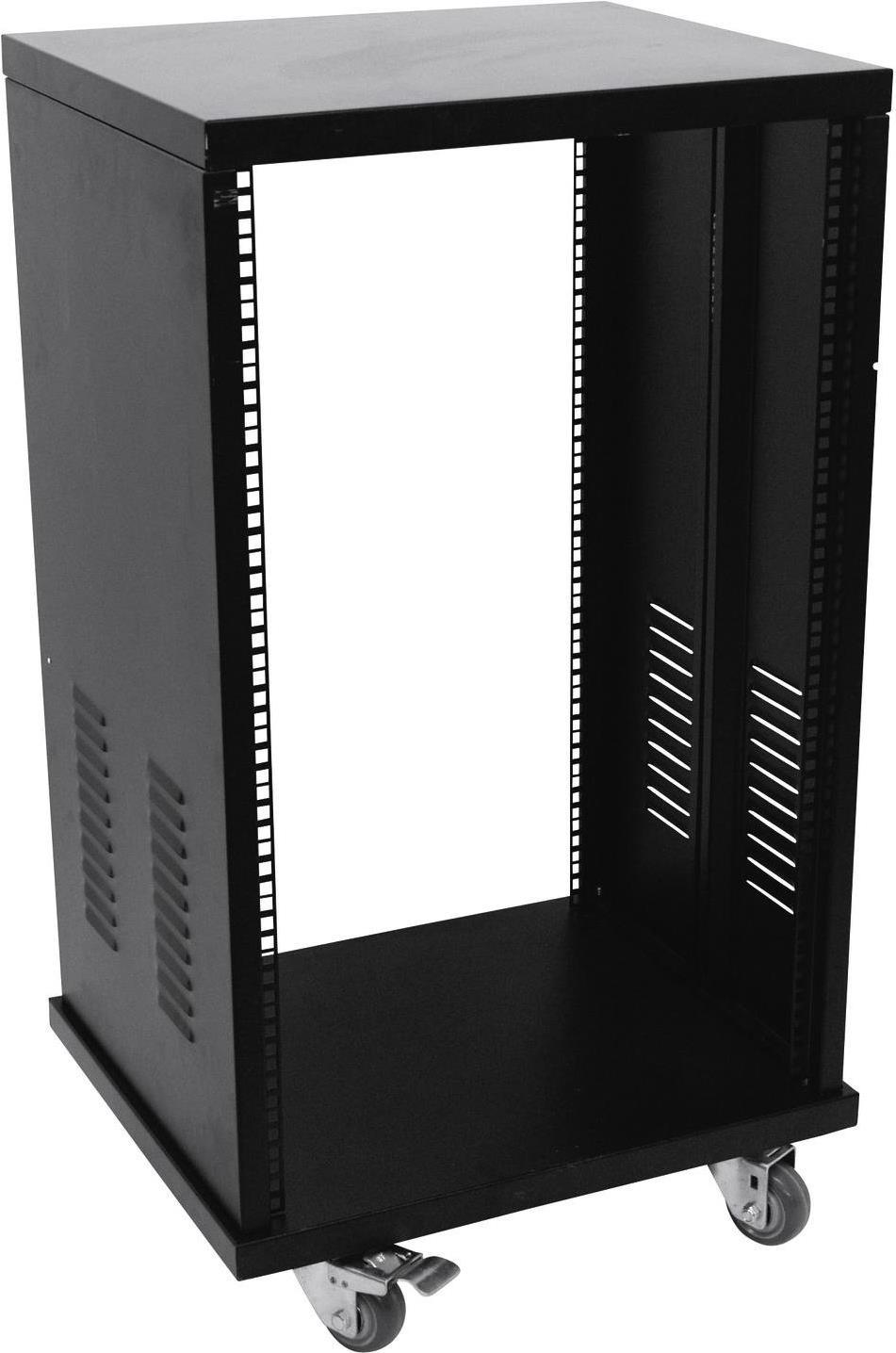ROADINGER Stahl-Rack SR-19, 22HEDie ultimative Lösung für alle Festinstallationen.Ausstattung: Schwarze pulverbeschichtete OberflächeGestanzte Rackschienen vorne und hinten4 LenkrollenIntegrierte Stützschiene in den Seitenteilen für schwere Geräte wie EndstufenKäfigmuttern, Schrauben und Plastikscheiben sind im Lieferumfang enthaltenEinbautiefe 41 cmLieferung erfolgt zerlegtIn verschiedenen Höheneinheiten erhältlich (1 HE = 44 mm)Technische Daten: Weitere technische Daten: Maximalbelastung: 100 kgGewicht: 24 kgVersandgewicht: 25.600 kg