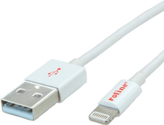 ROLINE - iPad-/iPhone-/iPod-Lade-/Datenkabel - Lightning / USB - USB Typ A, 4-polig (M) - Lightning (M) - 1.8 m - abgeschirmt - (USB/USB 2.0) - weiß (11.02.8322)