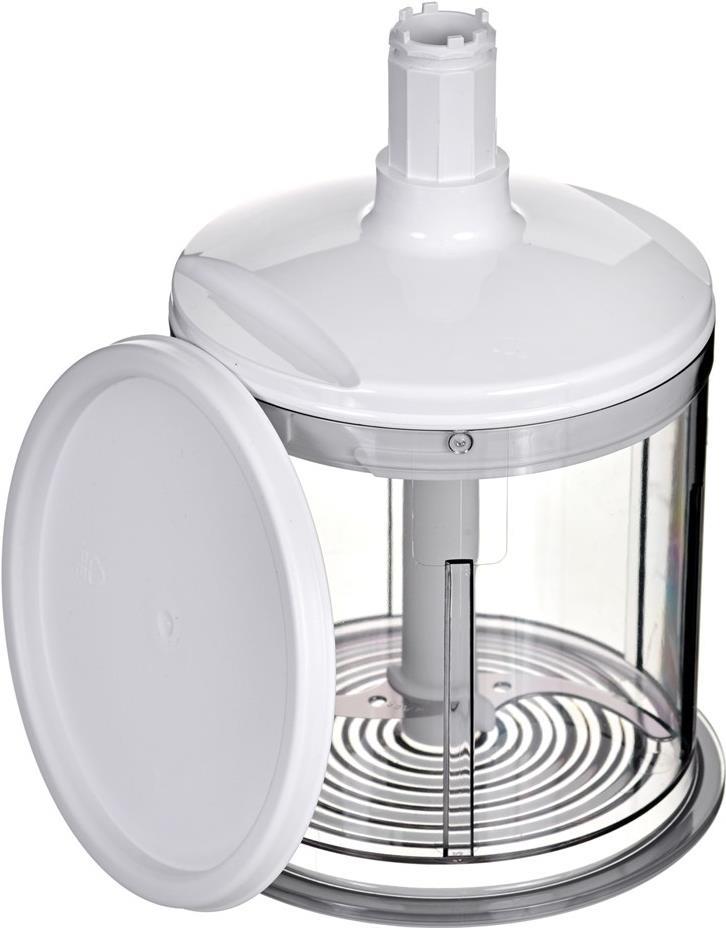 - XL-Universalzerkleinerer mit herausnehmbarem - Feinschliff-Edelstahlmesser - Verwendbar mit allen Bosch Handrührgeräten der Baureihe MFQ4xxx sowie Stabmixern der Baureihe MSM7xxx