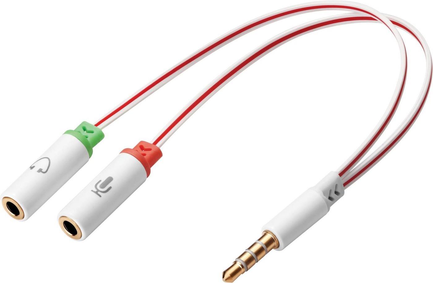 Einige Laptops und Mobiltelefone verfügen über MiniJack-Klinkenbuchsen sowohl für den Mikrophoneingang als auch für den Audioausgang. Mit diesem Adapter können Sie herkömmliche Kopfhörer mit zwei MiniJack-Klinkensteckern an einen MiniJack-Stecker mit doppelter Funktion anschließen.