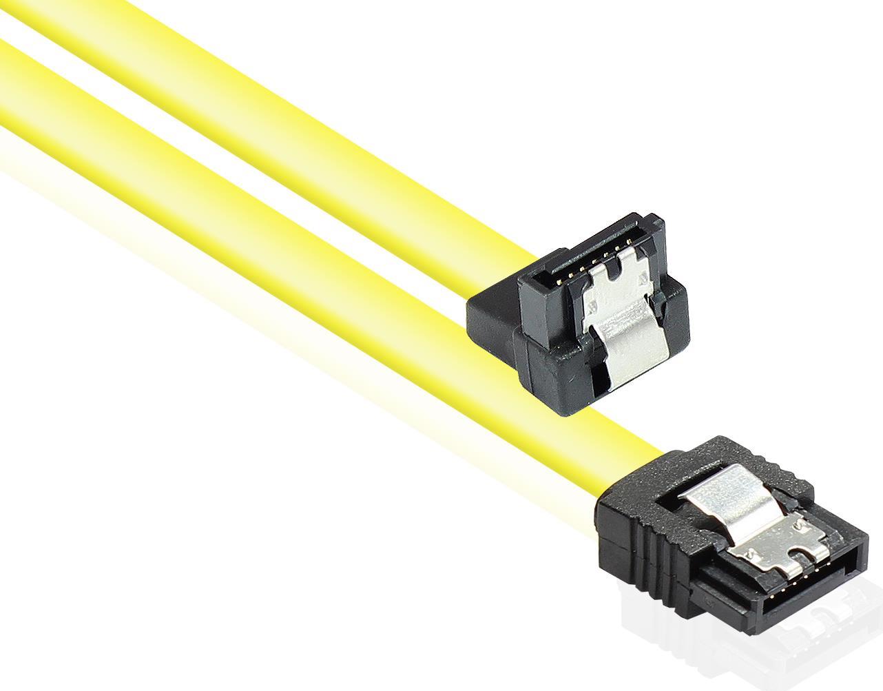 SATA 6 Gb/s Anschlusskabel mit Metallclip, gewinkelt, 0,50m, gelb, Good Connections® (5047-AW05Y)