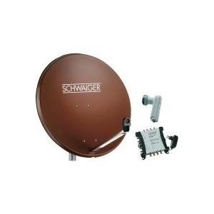 SCHWAIGER SAT Anlage 80 cm 8 Teilnehmer Quattro-LNB (ohne Switch) Ziegel-Rot mit Multischalter 5/8