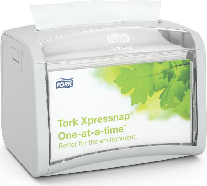 Das Tork Xpressnap Serviettenspendersystem senkt den Serviettenverbrauch um mindestens 25% im Vergleich zu herkömmlichen Spenderserviettensystemen. Dies hilft Ihnen dabei den Serviettenverbrauch und damit die Abfallmenge zu reduzieren.