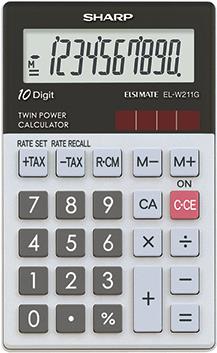 Sharp Elsi Mate EL-W211GGY - Taschenrechner - 10 Stellen - Solarpanel, Batterie - grau-schwarz (EL-W211G-GY)