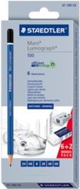 STAEDTLER Bleistift Mars Lumograph, 6er Kartonetui Minenstärke: 2,0 mm, sechseckig, blau lackiert, - 1 Stück (61 100 C6)