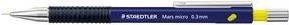 STAEDTLER Druckbleistift Mars micro, blau, 0,5 mm Minenstärke, versenkbare Spitze, mit Radierer, rutschfeste (775 05-3)