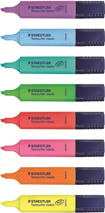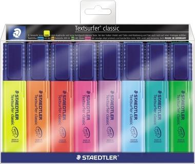 STAEDTLER Textmarker "Textsurfer classic", 8er Etui Strichstärke: 1,0 - 5,0 mm, Keilspitze, lichtbeständig, INKJET SAFE, für Papier, Fax und Durchschreibesätze, auswaschbar, nachfüllbar, Schaft in Strichfarbe / Kappe ...