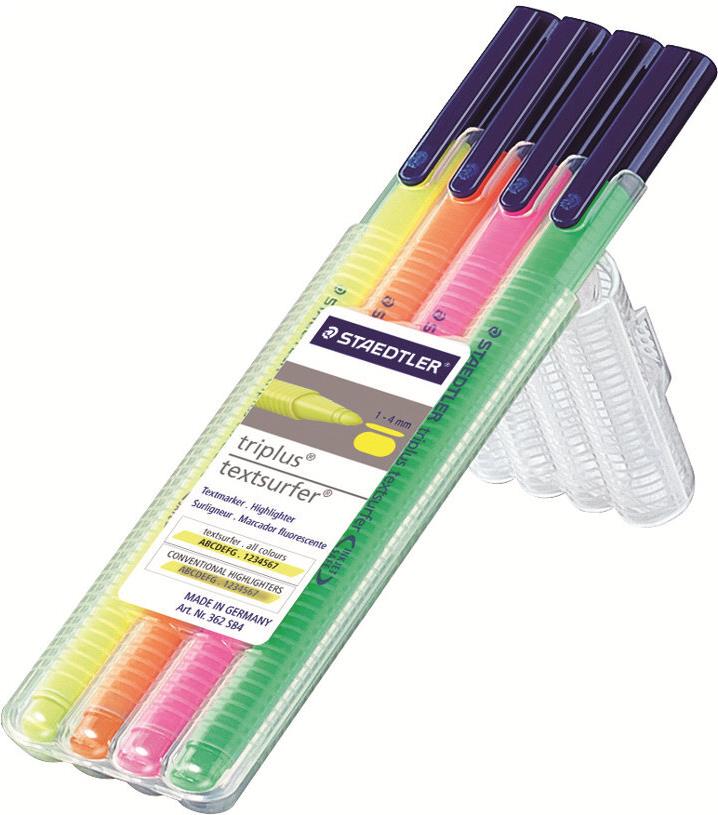STAEDTLER Textmarker "triplus textsurfer", 4er Etui Strichstärke: 1,0 - 4,0 mm, Rundspitze, dreeickig (362 SB4)