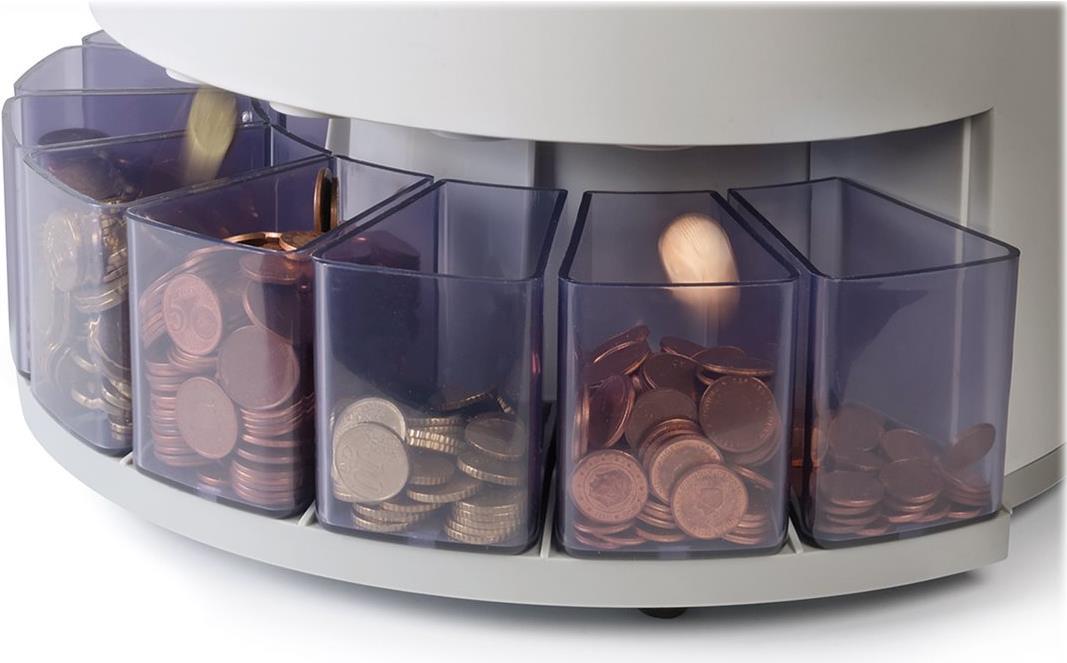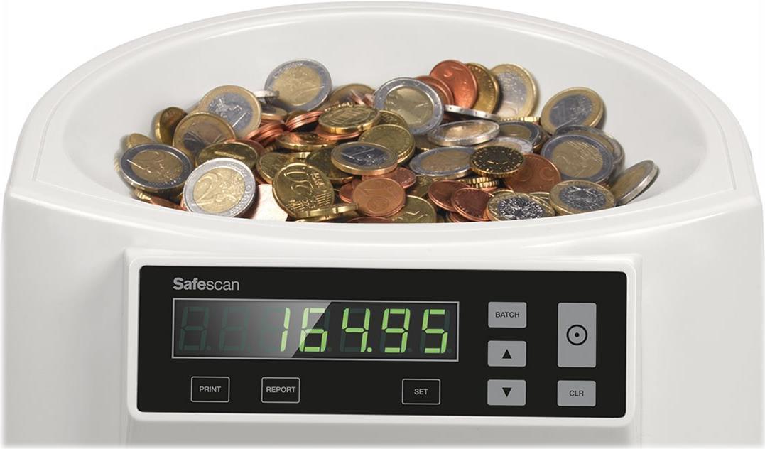 Dank seinem großen Aufnahmetrichter kann der Safescan 1250 bis zu 500 Münzen aufnehmen und mit einer Geschwindigkeit von bis zu 220 Münzen pro Minute ist der Inhalt Ihrer Kassenlade blitzschnell gezählt. Schütten Sie einfach alle Münzen aus dem Münzbehälter oder aus der Tasche in den Aufnahmetrichter - eine vorherige Sortierung ist nicht erforderlich - und drücken Sie auf Start.