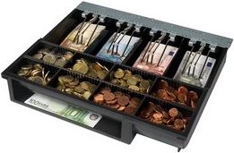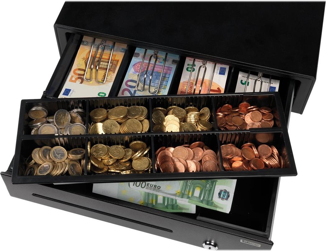 Packungsinhalt Einstellbare Kasse (4 Banknoten-, 8 Münzfächer)