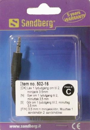Sandberg - Audio-Adapter - Mini-Phone Stereo 3,5 mm (W) - Mini-Phone Stereo 3,5 mm (M) - Schwarz (502-16)