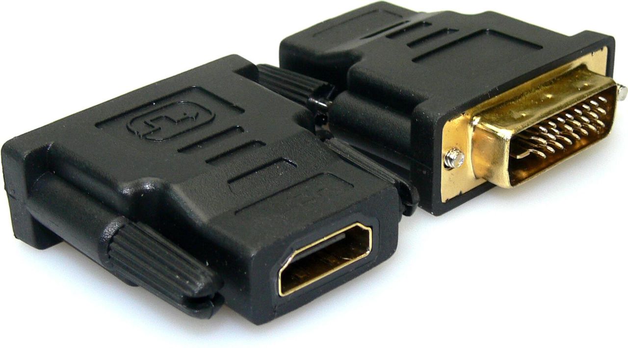 Mit diesem Adapter können Sie HDMI in DVI umwandeln. Auf diese Weise können Sie ein HDMI-Gerät, z. B. einen Flachbildschirm, über ein HDMI-Kabel an Ihre Computergrafikkarte anschließen. Beachten Sie, dass dieser Adapter nur Video übertragen kann und daher nicht für die Übertragung von Audio verwendet werden kann.