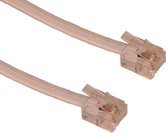 Telefonkabel mit einem RJ11-Anschluss an jedem Ende. Das Kabel kann zum Beispiel auch verwendet werden, um ein Telefon mit einem RJ11-Stecker an eine Dose anzuschließen.