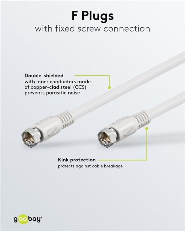 Wentronic Goobay SAT Anschlusskabel, 100% geschirmt, Weiß, 2.5 m - F-Stecker <=> F-Stecker (50738)