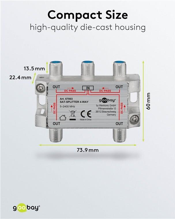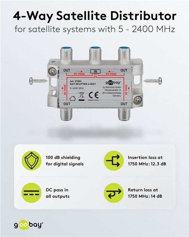 Wentronic Goobay SAT-Verteiler, 4-fach - Für Satelliten-Anlagen 5-2500 MHz (67003)
