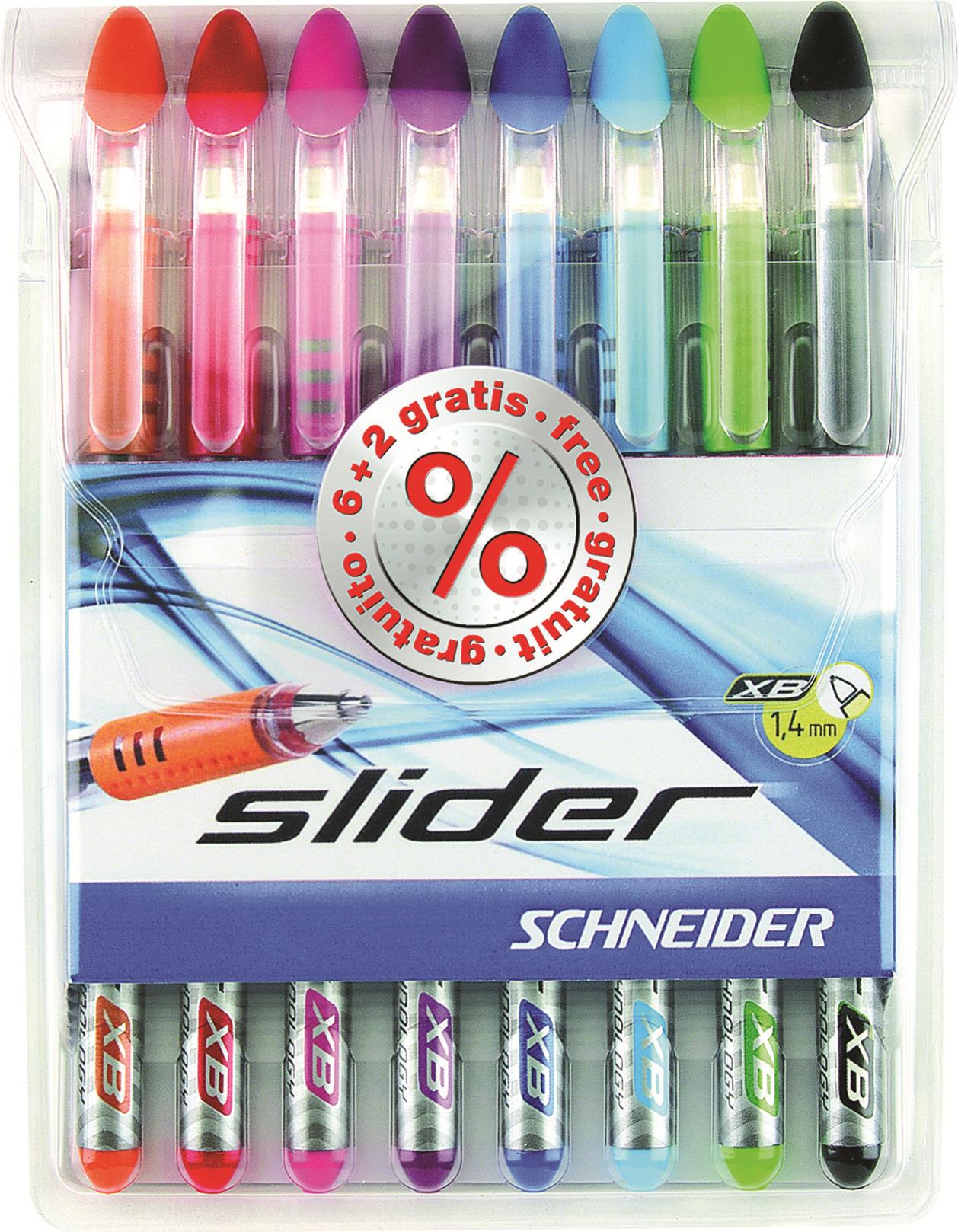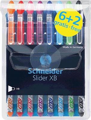 Schneider Slider Basic - Stick Pen - Schwarz - Blau - Hellblau - Hellgrün - Orange - Pink - Rot - Violett - Mehrfarben - Extradick - Edelstahl - Ambidextrös (151298)