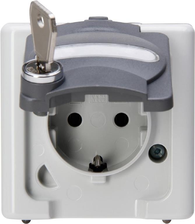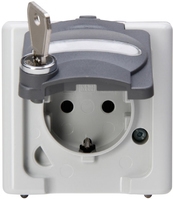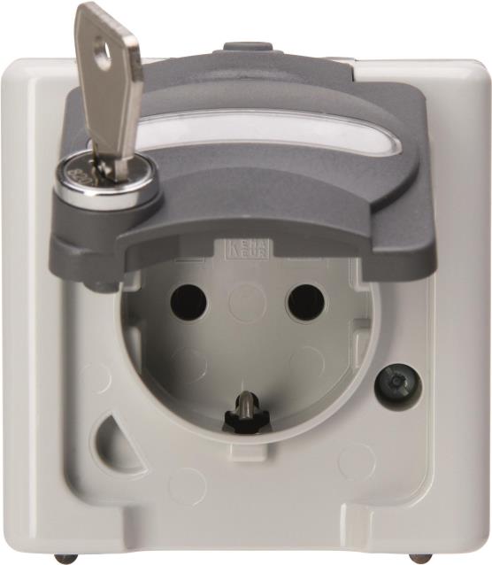 Schutzkontakt-Steckdose 1-fach mit Sicherheitsschloss, AP-Feuchtraum BLUE ELECTRIC grau (103756008)