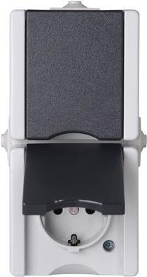 Aufputz-Feuchtraum, Schutzkontakt-Steckdose mit Klappdeckel, 2-fach, senkrecht, ohne Berührungsschutz (Berührungsschutz), 16A, 250V~, proAQA, hellgrau/dunkelgrau
