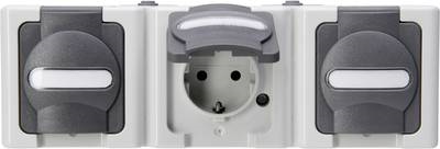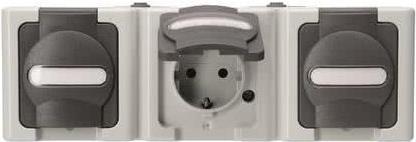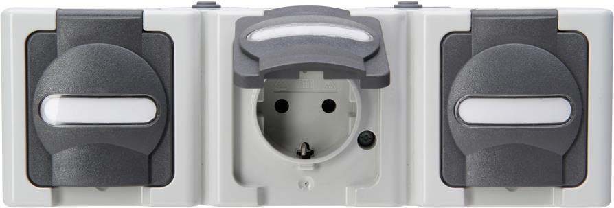 Schutzkontakt-Steckdose 3-fach waagerecht, AP-Feuchtraum BLUE ELECTRIC grau (131356005)