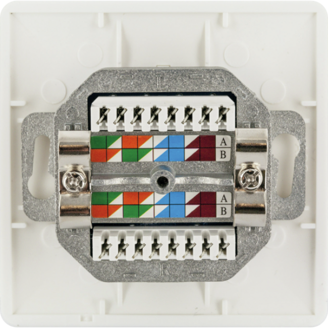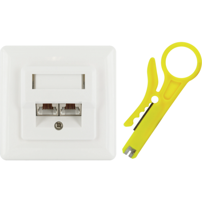 Mit dieser SCHWAIGER® Netzwerkdose kann ein Heimnetzwerk installiert werden. Sie ist voll geschirmt und mit 2 getrennten RJ45 Anschlüssen versehen. Die Dose ist auf CAT 6 genormt. Angeschlossene Geräte können ohne ...