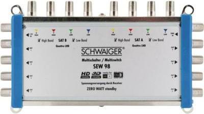 • Schwaiger SAT Multischalter SEW98 531 Eingänge (Multischalter): 9 (8 SAT/1 terrestrisch) Teilnehmer-Anzahl: 8 StandBy-Fu (SEW98 531)