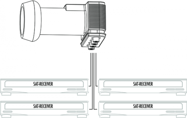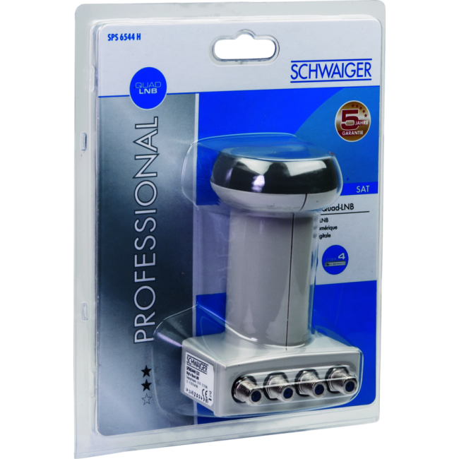 Mit diesem SCHWAIGER Quad LNB, das für Multifeedanlagen geeignet ist, kann eine digitaltaugliche Satellitenanlage mit bis zu 4 Teilnehmern aufgebaut werden. Dabei können die Satellitenreceiver direkt mit dem LNB verbunden werden. Die herausziehbare Wetterschutzabdeckung schützt die F-Anschlüsse des LNBs vor Witterungseinflüssen.