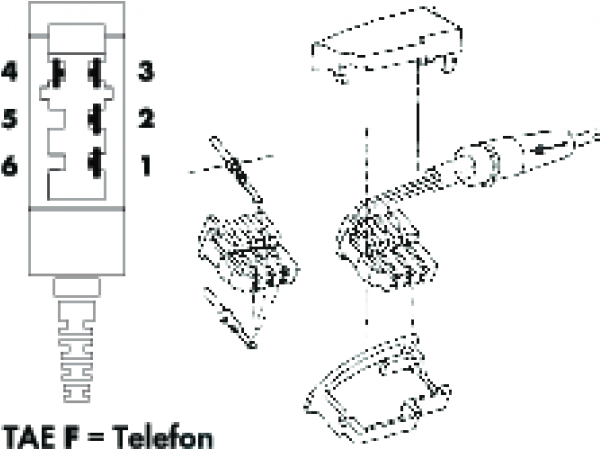 Dieses Schwaiger Schnellbaustecker mit der Codierung \"F\" ist für den Anschluss eines Telefons geeignet. Der Artikel hat 4 Einbaupins. Er besitzt einen Knickschutz und kann aus den Einzelteilen, wie z. B. der Kabelführung und dem Stecker, einfach montiert werden. Der Telefonstecker kann lötfrei am Kabel befestigt werden.Produkttext[/head]Dieses SCHWAIGER® Schnellbaustecker mit der Codierung \"F\" ist für den Anschluss eines Telefons geeignet. Der Artikel hat 4 Einbaupins. Er besitzt einen Knickschutz und kann aus den Einzelteilen, wie z. B. der Kabelführung und dem Stecker, einfach montiert werden. Der Telefonstecker kann lötfrei am Kabel befestigt werden.[head]Hauptmerkmale