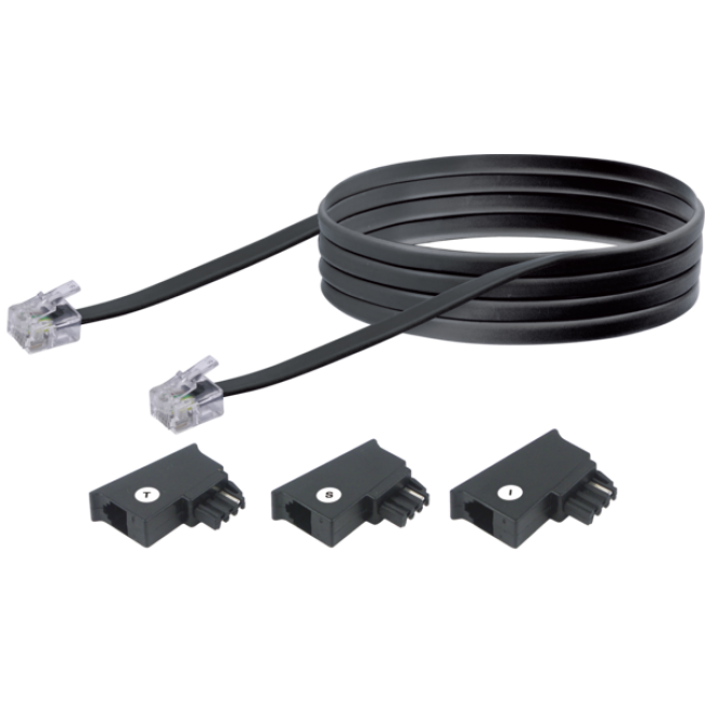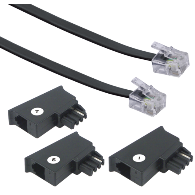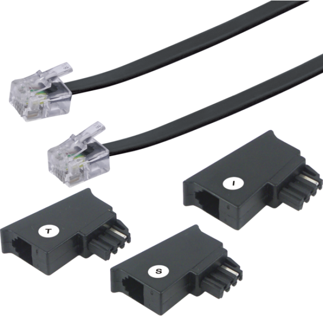 Mit diesem 4-teiligen Schwaiger Telefon Anschlussset können alle handelsüblichen Telefone an eine TAE Anschlussdose angeschlossen werden. Das Telefonkabel wird dazu in einen der 3 vorgesehenen Adapter gesteckt und mit der Telefondose verbunden. Die Adapter sind speziell gekennzeichnet. Der Adapter \"S\" ist für Telefone von Siemens, \"T\" für Telefone der Telekom und \"I\" für internationale Telefone konzipiert.Produkttext[/head]Mit diesem 4-teiligen SCHWAIGER® Telefon Anschlussset können alle handelsüblichen Telefone an eine TAE Anschlussdose angeschlossen werden. Das Telefonkabel wird dazu in einen der 3 vorgesehenen Adapter gesteckt und mit der Telefondose verbunden. Die Adapter sind speziell gekennzeichnet. Der Adapter \"S\" ist für Telefone von Siemens, \"T\" für Telefone der Telekom und \"I\" für internationale Telefone konzipiert.[head]Hauptmerkmale