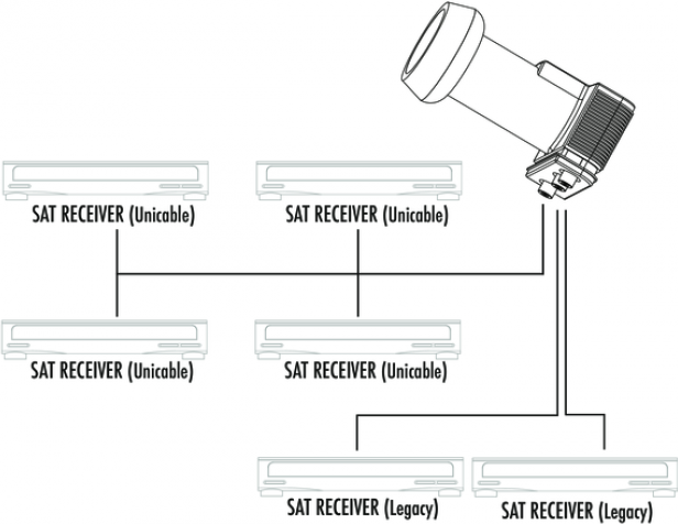Mit diesem SCHWAIGER LNB können bis zu 4 unicable taugliche Receiver betrieben werden. Die Receiver werden dabei an nur eine Ableitung über eine Durchgangsdose angeschlossen. Die Unicable Technologie ist besonders für den Umstieg von Kabelfernsehen auf Satellitenempfang geeignet. Das Unicable Quad LNB verfügt zusätzlich über zwei Lagacy Ausgänge, die für zwei standardisierte Satellitenreceiver ohne Unicable, genutzt werden können.
