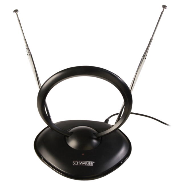 Diese SCHWAIGER® Zimmerantenne ist für den terrestrischen Empfang von Fernseh- und Radioprogrammen (UKW) entwickelt worden. Der zusätzliche Empfang von digitalen Regionalprogrammen macht diese Antenne so besonders. Der eingebaute Verstärker ermöglicht die Übertragung in Full HD. Die kreisförmige Antenne ist schwenk- und neigbar, so dass der Empfang optimal eingestellt werden kann. Die Antenne ist für das Durchschleifen von Signalen vorhandener Anschlüsse (Antenne, Kabel) einsetzbar.