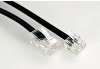 Telefonkabel, flach, 2 Leitungen (3+4)Farbe: Kabel schwarz, Stecker transparentAnwendung: Im Telefon/Fax/ADSL Umfeld