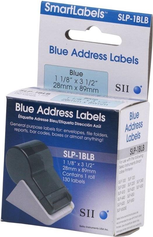 Seiko Instruments - Blau - 28 x 89 mm 130 Stck. (1 Rolle(n) x 130) Adressetiketten - für Smart Label Printer 100, 120, 200, 220, 620, 650SE, EZ30, Pro (16.06.2053)