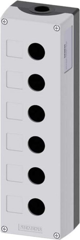 Metall-Gehäuse 3SUTechnische Daten: Einbau-Durchmesser: 22 mmFarbe: GrauInhalt: 1 St.Material (LOV): MetallProduktabmessung, Breite: 85 mmProduktabmessung, Höhe: 64 mmProduktabmessung, Länge: 285 mmSchalter/Taster-Besonderheiten: 6 Einbaustellen,für BodenbefestigungTyp (Hersteller-Typ): SIRIUS ACT 3SU1856-0AA00-0AB1Weitere technische Daten: oben und unten je 1 x M25Zubehör-Typ (BFM): LeergehäuseHinweis: Mit Vertiefung für Bezeichnungsschilder.