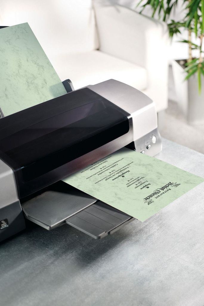 Marmor-Papier pastellgrün, 90g/m -Feinpapier zum Bedrucken mit InkJet- und Laser-Drucker sowie zum Kopieren geeignet. Das Papier ist vielseitig einsetzbar beispielsweise als Brief, Einladung, Speise- und Menükarte oder Info-Aushang. Im Lieferumfang sind 100 Blatt im Format DIN A4 enthalten.