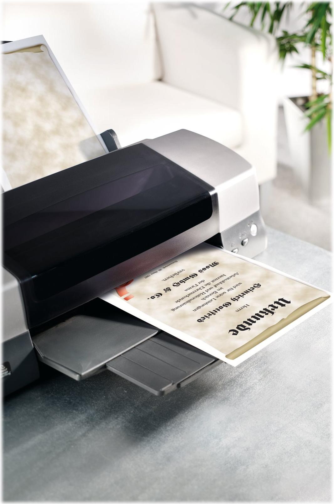Motiv-Papier "Urkundenrolle", 185g/m -Feinpapier mit neutralem Urkundenvordruck als Motiv, zum Bedrucken mit InkJet- und Laser-Drucker sowie zum Kopieren geeignet. Das Papier ist vielseitig einsetzbar beispielsweise als Urkunde, Zertifikat oder Auszeichnung bei Vereinen, Verbänden, Schulen, zu Geburtstagen, Firmenveranstaltungen etc. Im Lieferumfang sind 12 Blatt im Format DIN A4 enthalten.
