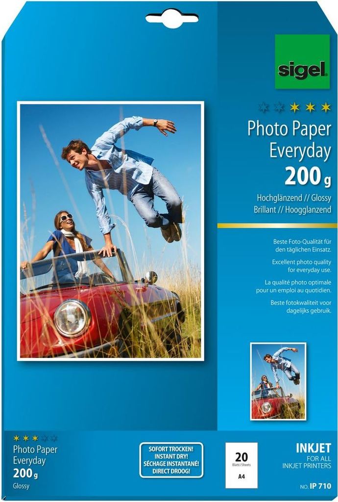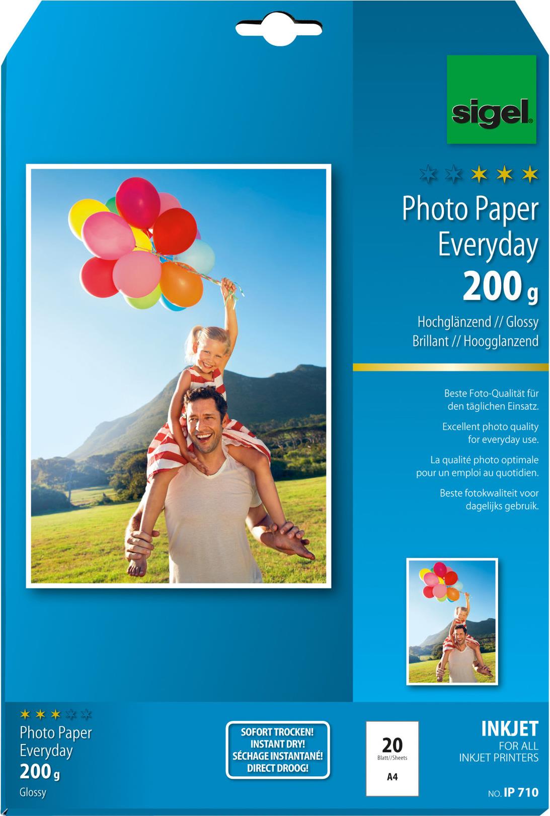 Sigel InkJet Everyday plus Photo Paper IP710 - Fotopapier, glänzend - weiß - A4 (210 x 297 mm) - 200 g/m2 - 20 Blatt (IP710)
