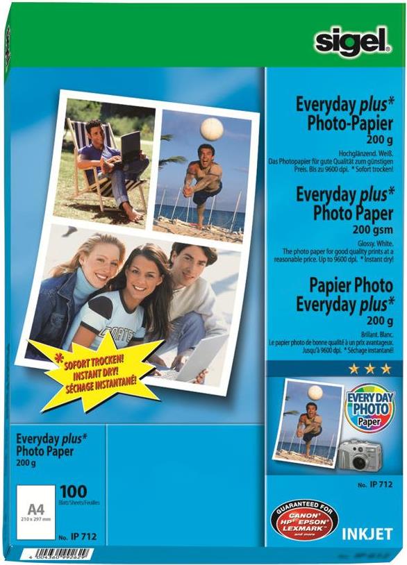 Sigel InkJet Everyday plus Photo Paper IP712 - Fotopapier, glänzend - weiß - A4 (210 x 297 mm) - 200 g/m2 - 100 Blatt (IP712)