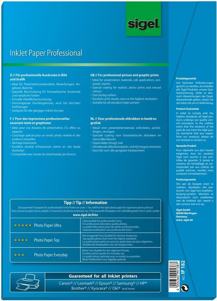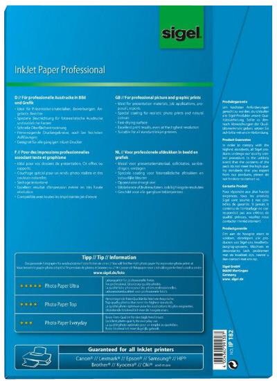 Sigel InkJet Paper IP182 - Gestrichenes Papier - hochweiß - A4 (210 x 297 mm) - 120 g/m2 - 50 Blatt (IP182)