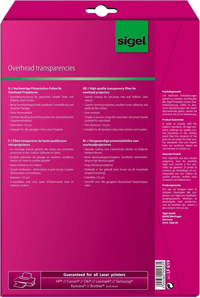 Sigel LF619 - Overhead-Transparentfolien - 125 Mikron - A4 (210 x 297 mm) - 20 Blatt (LF619)