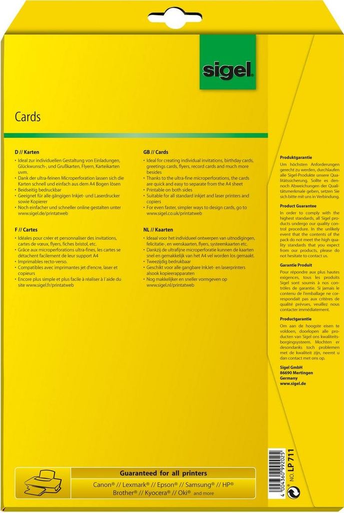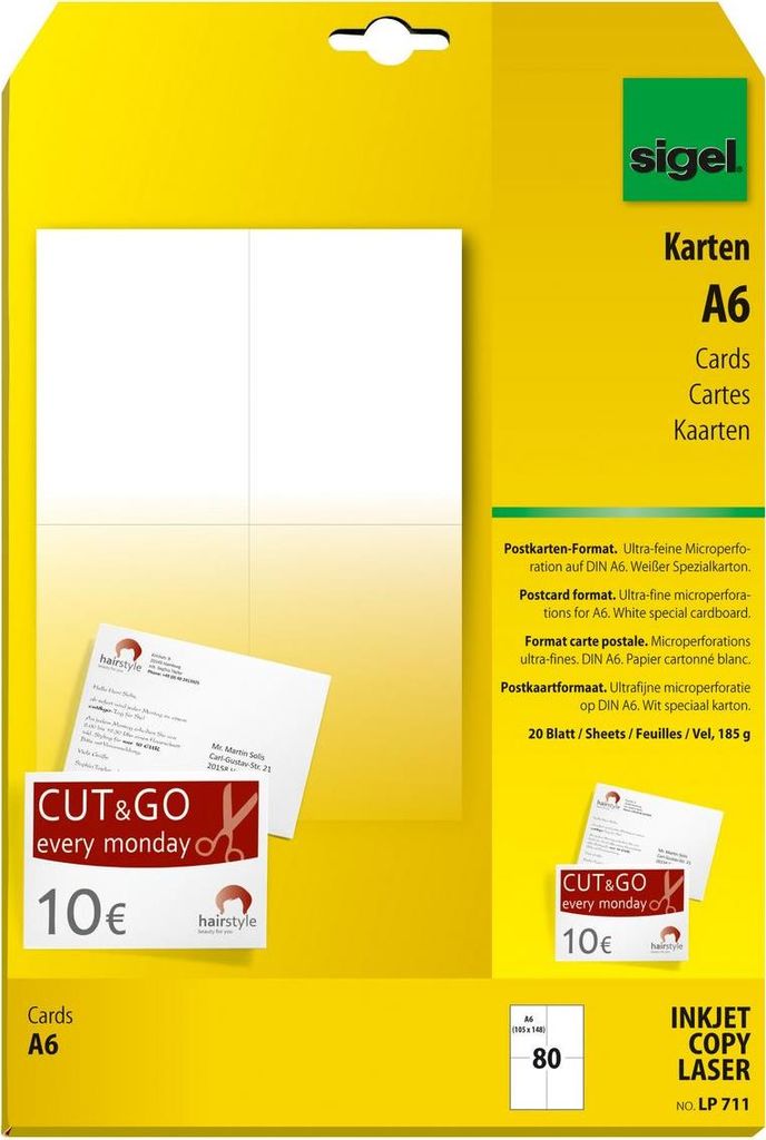 Sigel LP711 - Postkartenpapier - 80 Karte(n) - A6 - 185 g/m² |